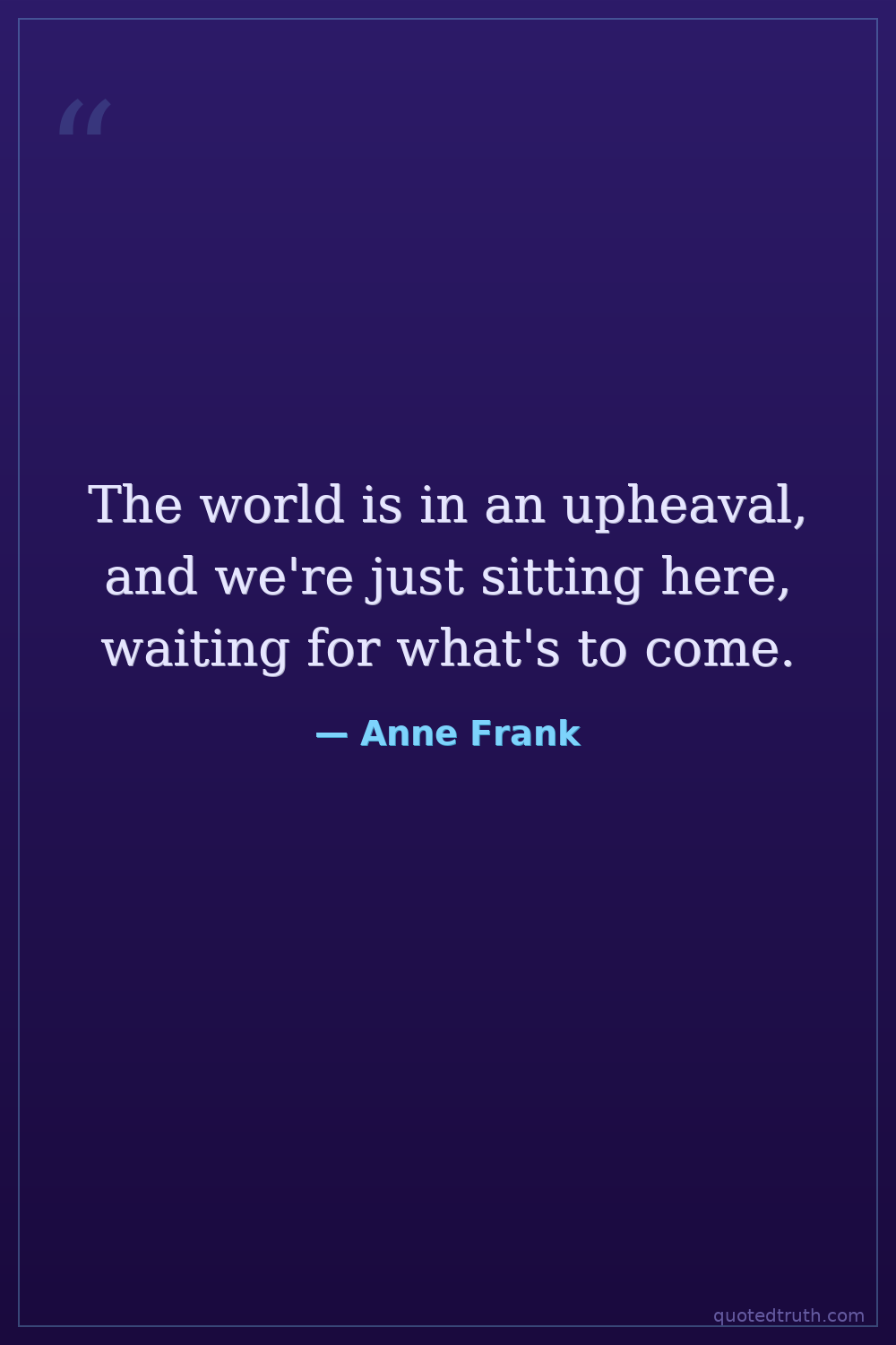 The world is in an upheaval, and we're just sitting here, waiting for what's to come.