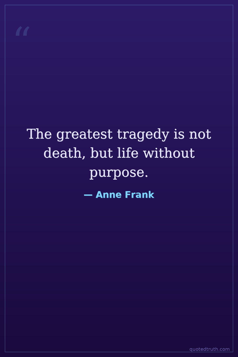 The greatest tragedy is not death, but life without purpose.