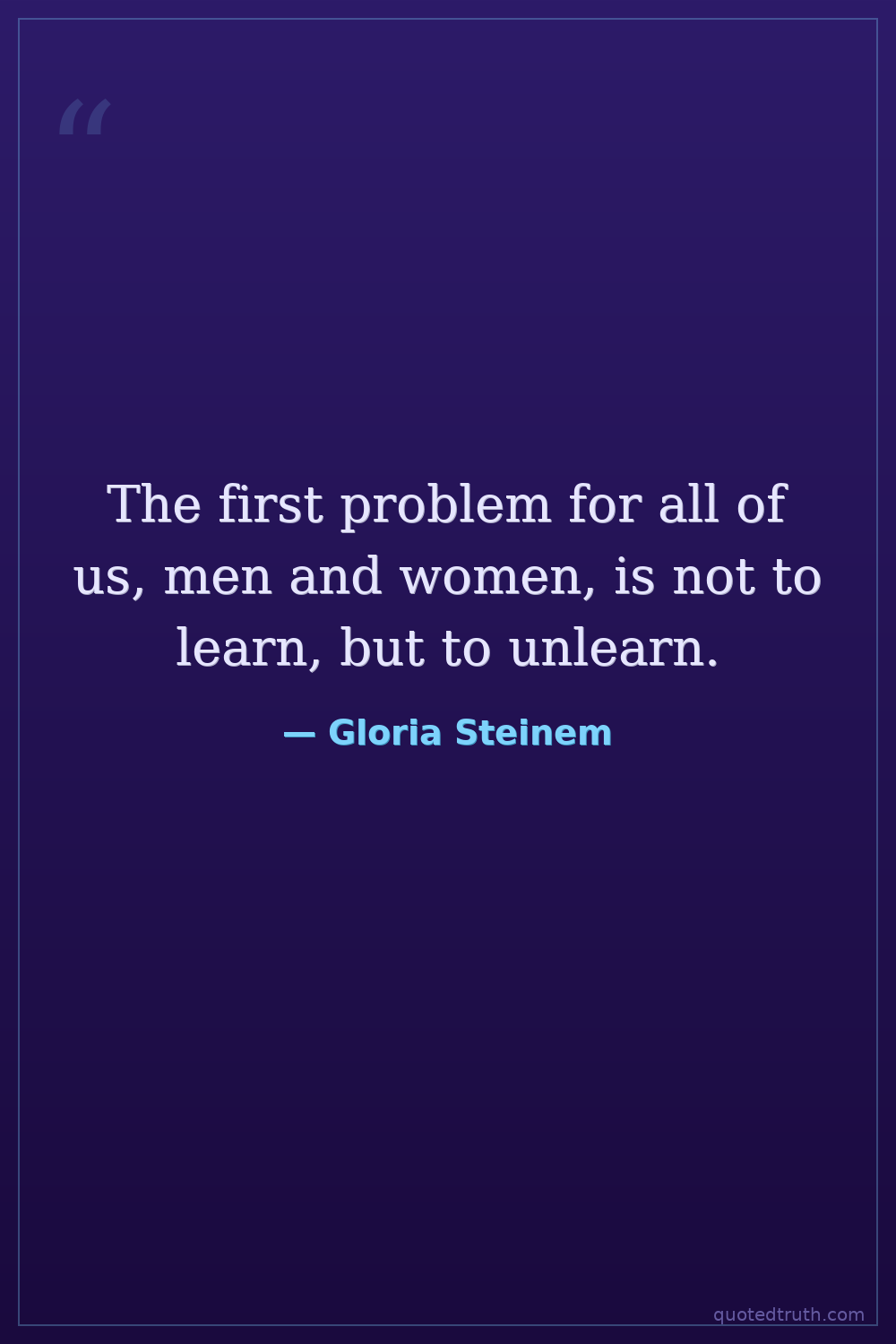 The first problem for all of us, men and women, is not to learn, but to unlearn.