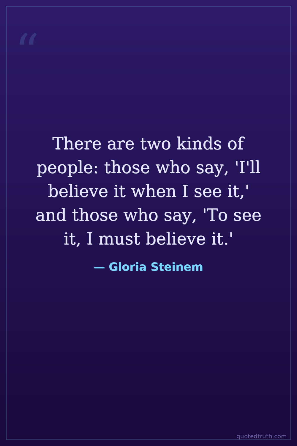 There are two kinds of people: those who say, 'I'll believe it when I see it,' and those who say, 'To see it, I must believe it.'