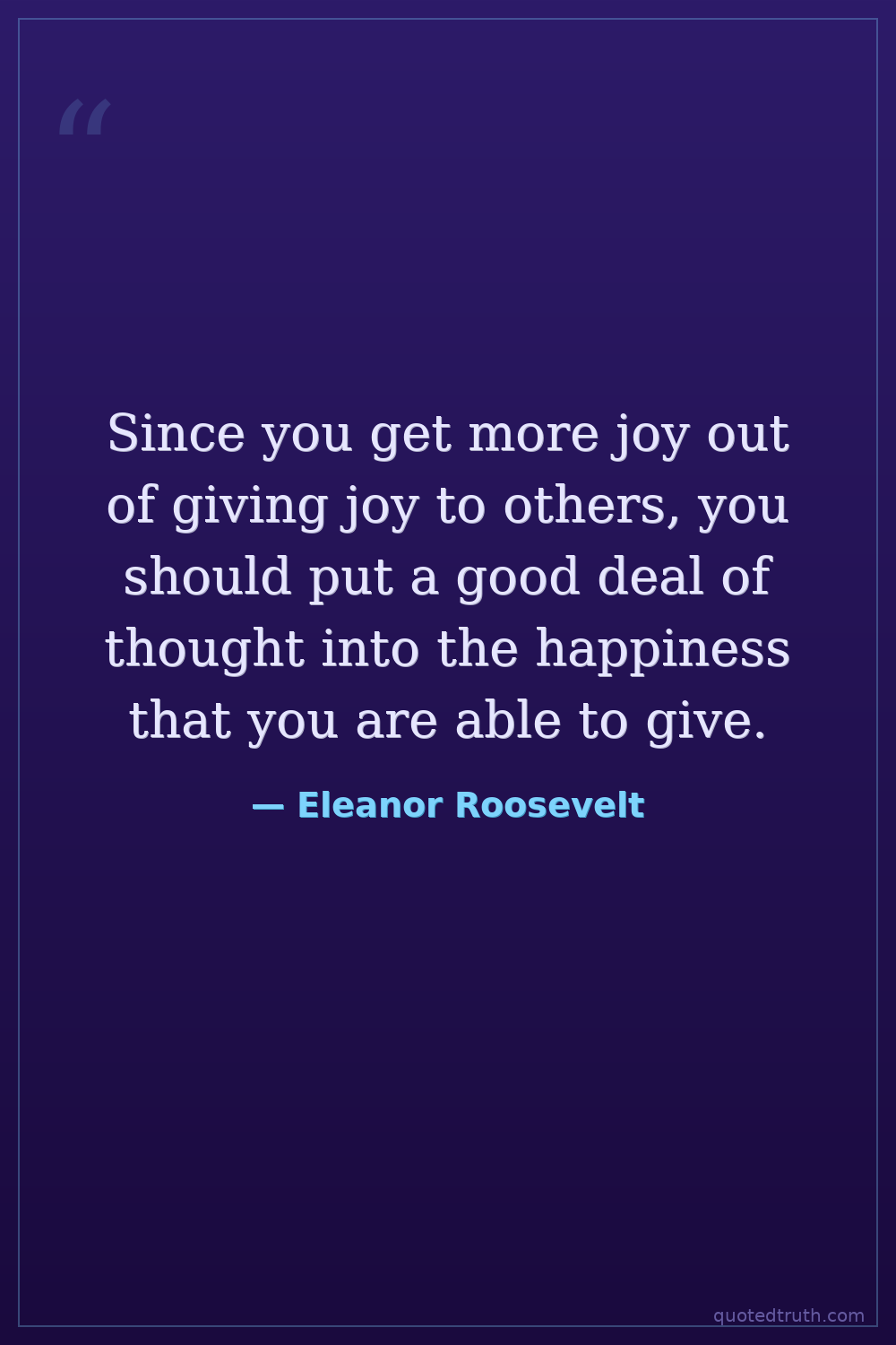 Since you get more joy out of giving joy to others, you should put a good deal of thought into the happiness that you are able to give.