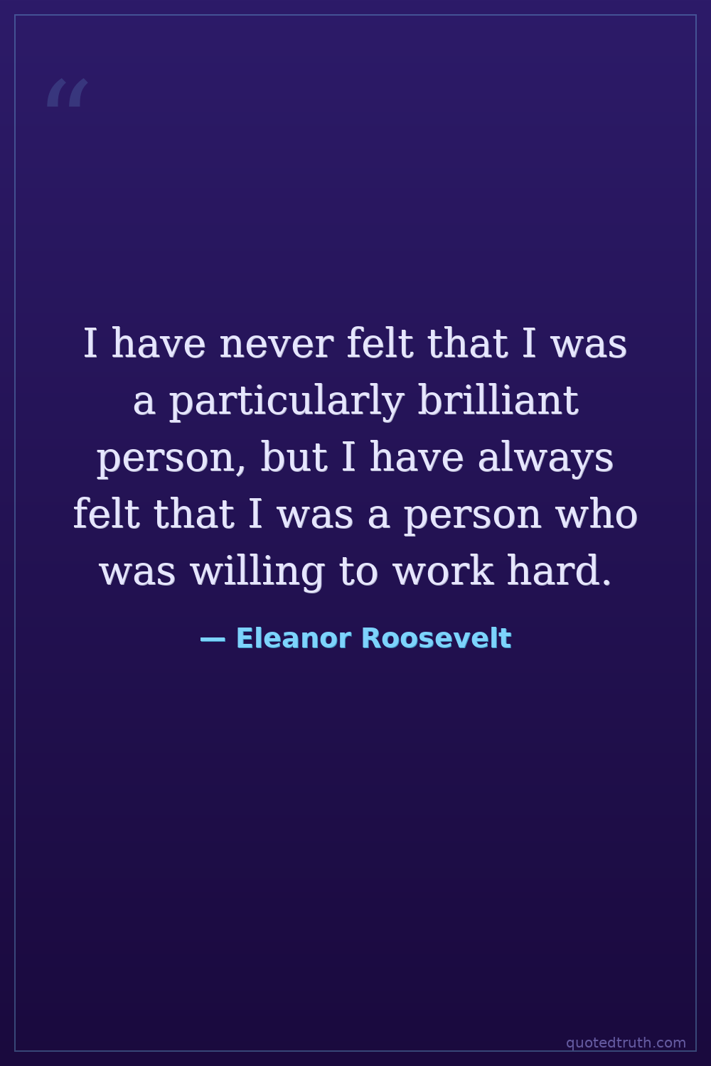 I have never felt that I was a particularly brilliant person, but I have always felt that I was a person who was willing to work hard.