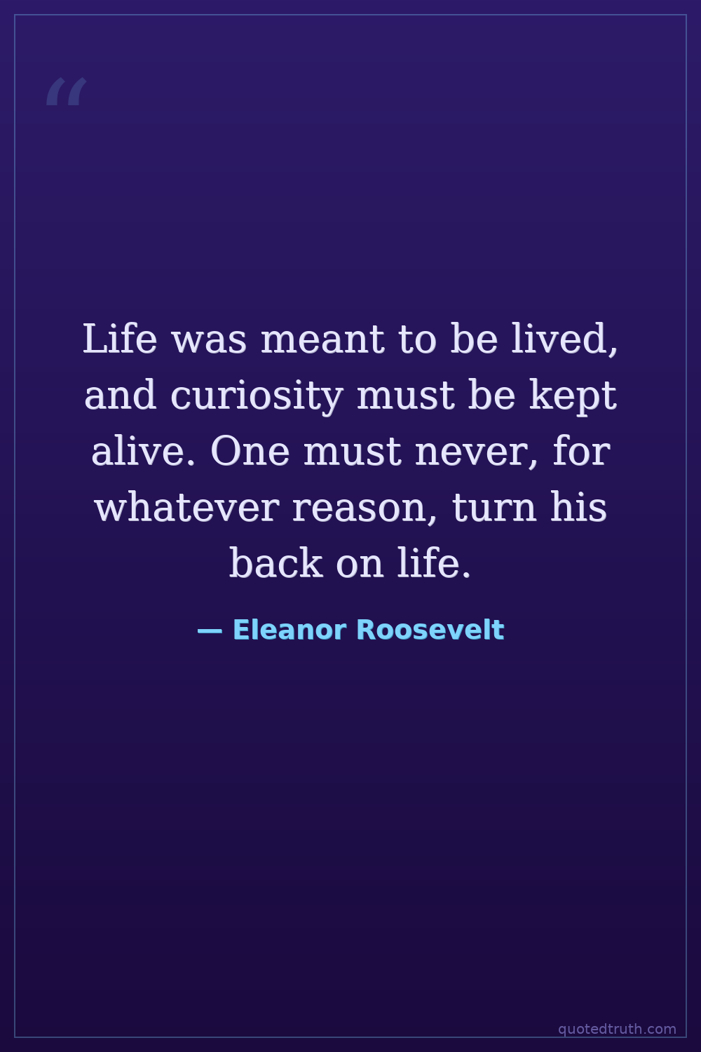 Life was meant to be lived, and curiosity must be kept alive. One must never, for whatever reason, turn his back on life.