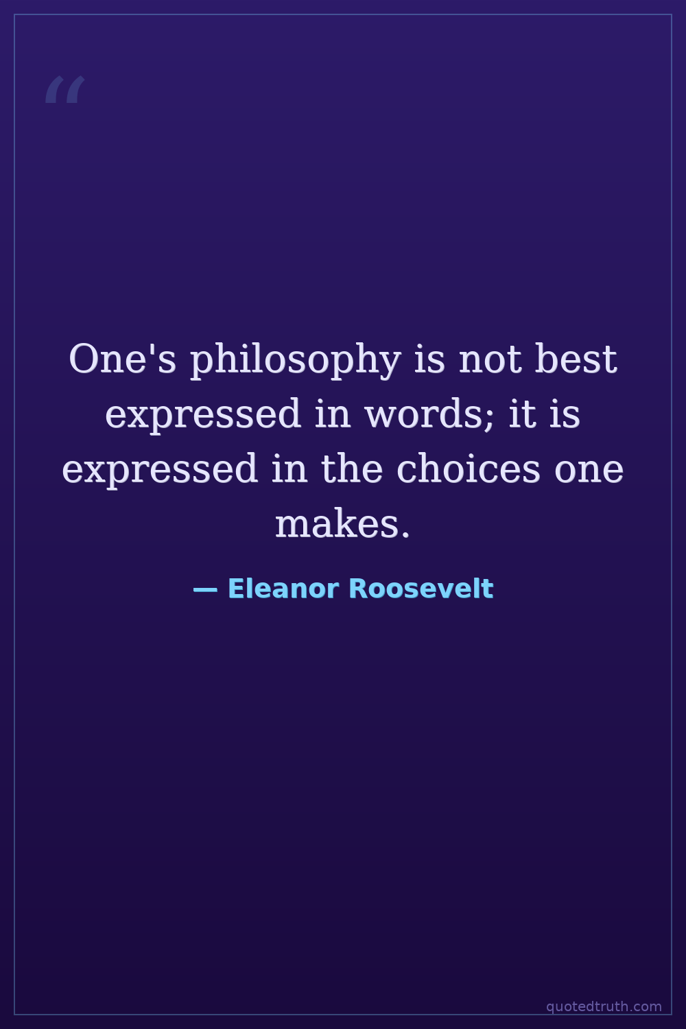 One's philosophy is not best expressed in words; it is expressed in the choices one makes.