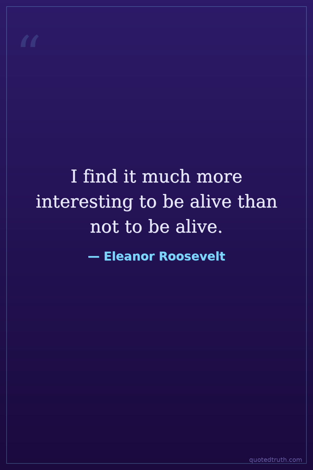 I find it much more interesting to be alive than not to be alive.