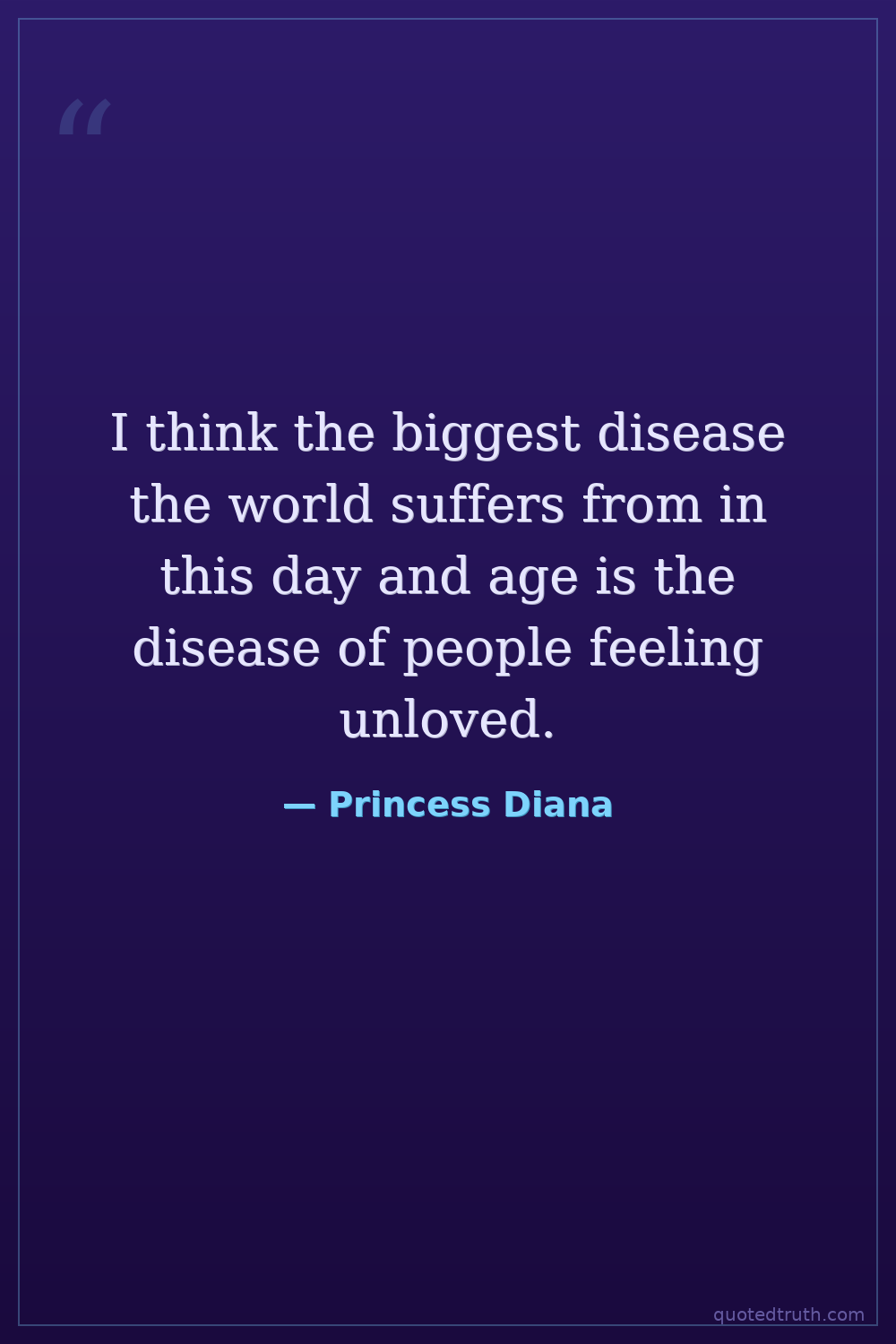 I think the biggest disease the world suffers from in this day and age is the disease of people feeling unloved.