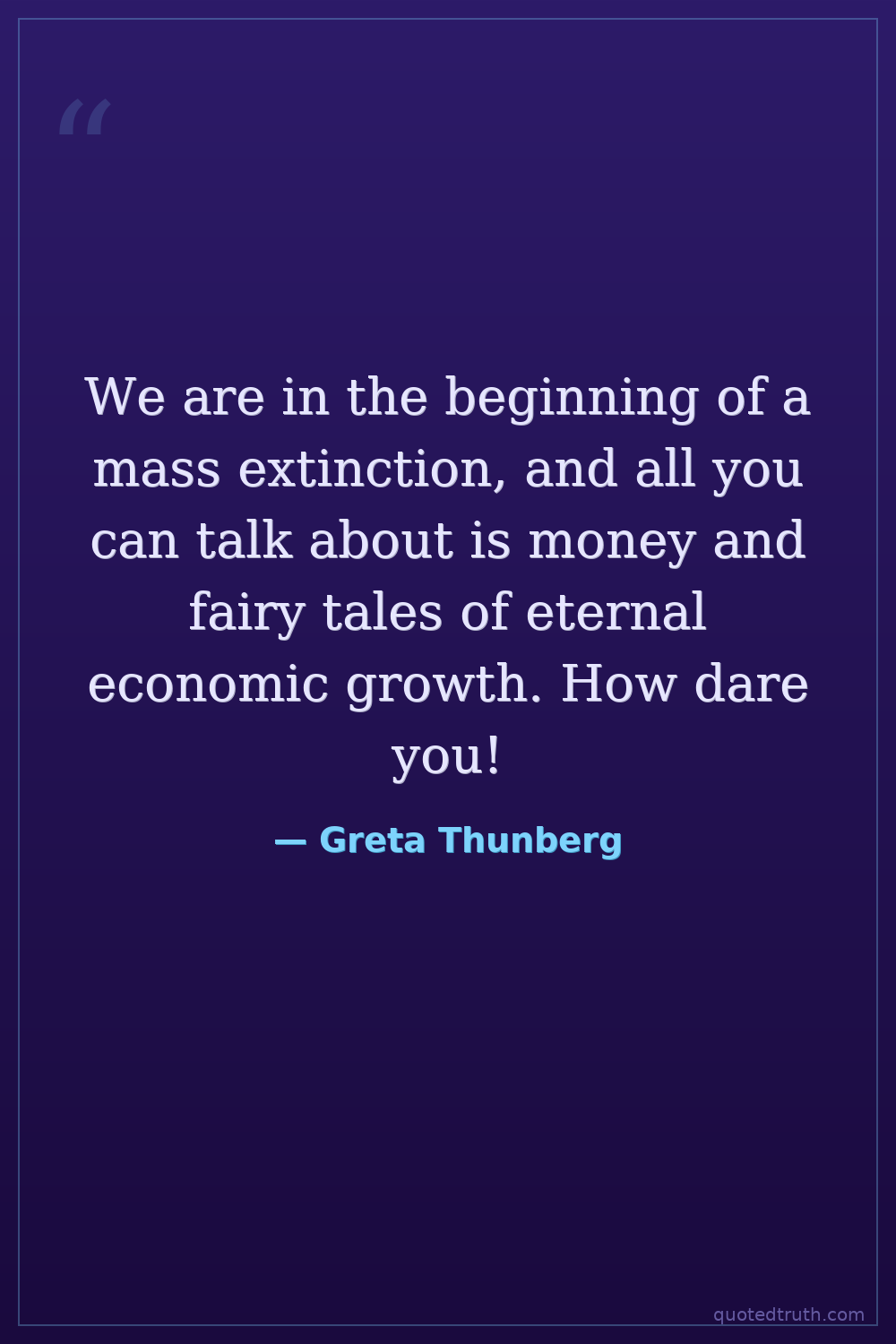 We are in the beginning of a mass extinction, and all you can talk about is money and fairy tales of eternal economic growth. How dare you!