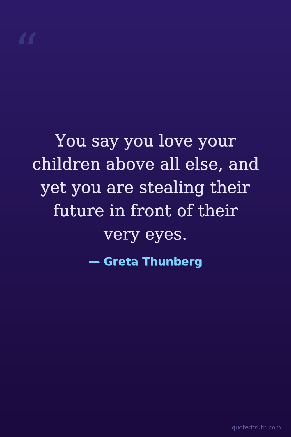 You say you love your children above all else, and yet you are stealing their future in front of their very eyes.