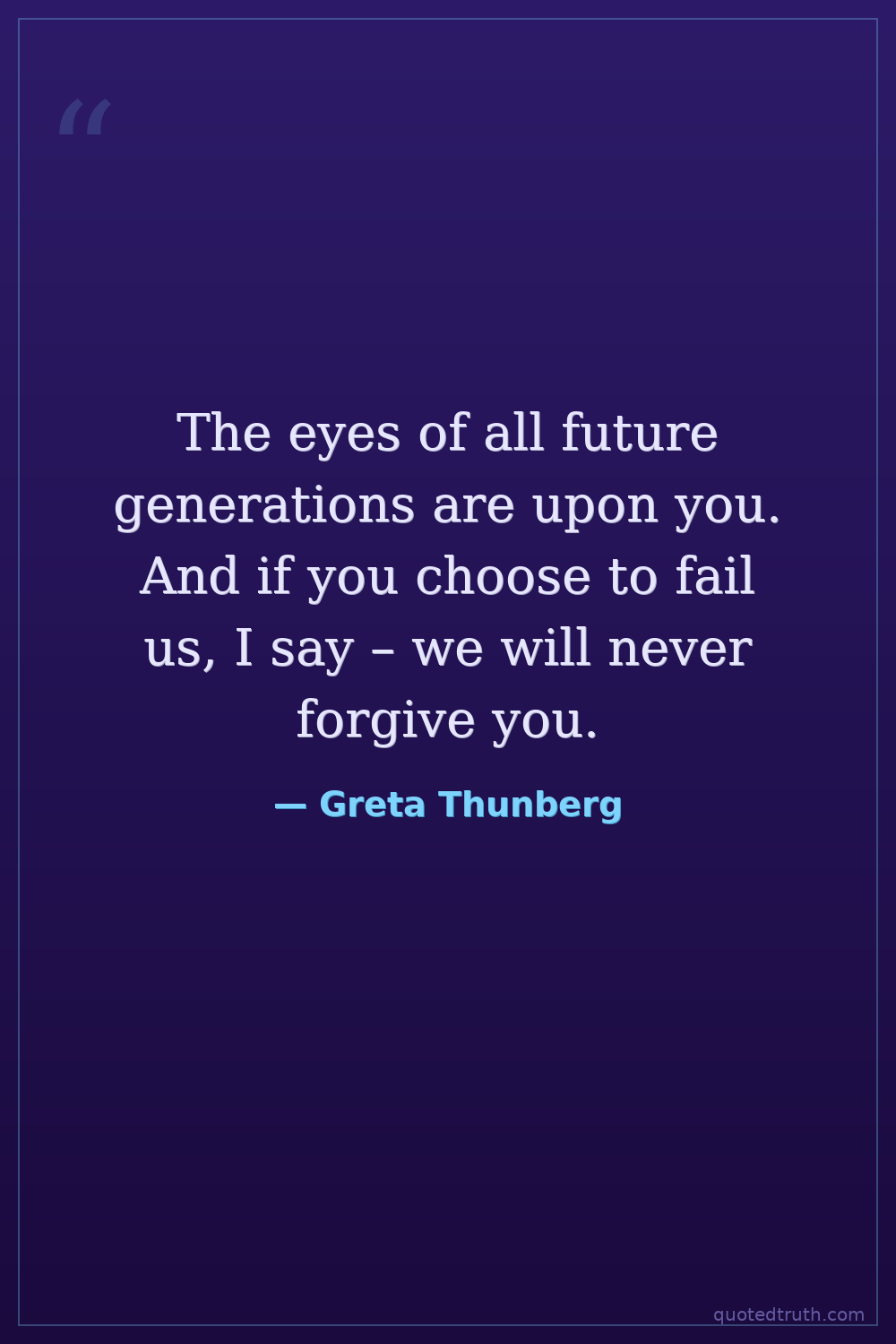 The eyes of all future generations are upon you. And if you choose to fail us, I say – we will never forgive you.