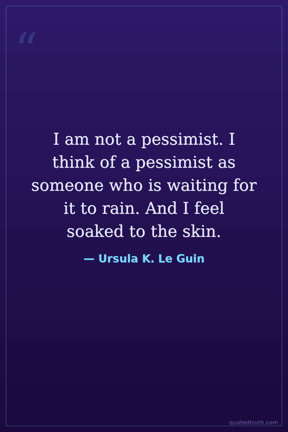 I am not a pessimist. I think of a pessimist as someone who is waiting for it to rain. And I feel soaked to the skin.
