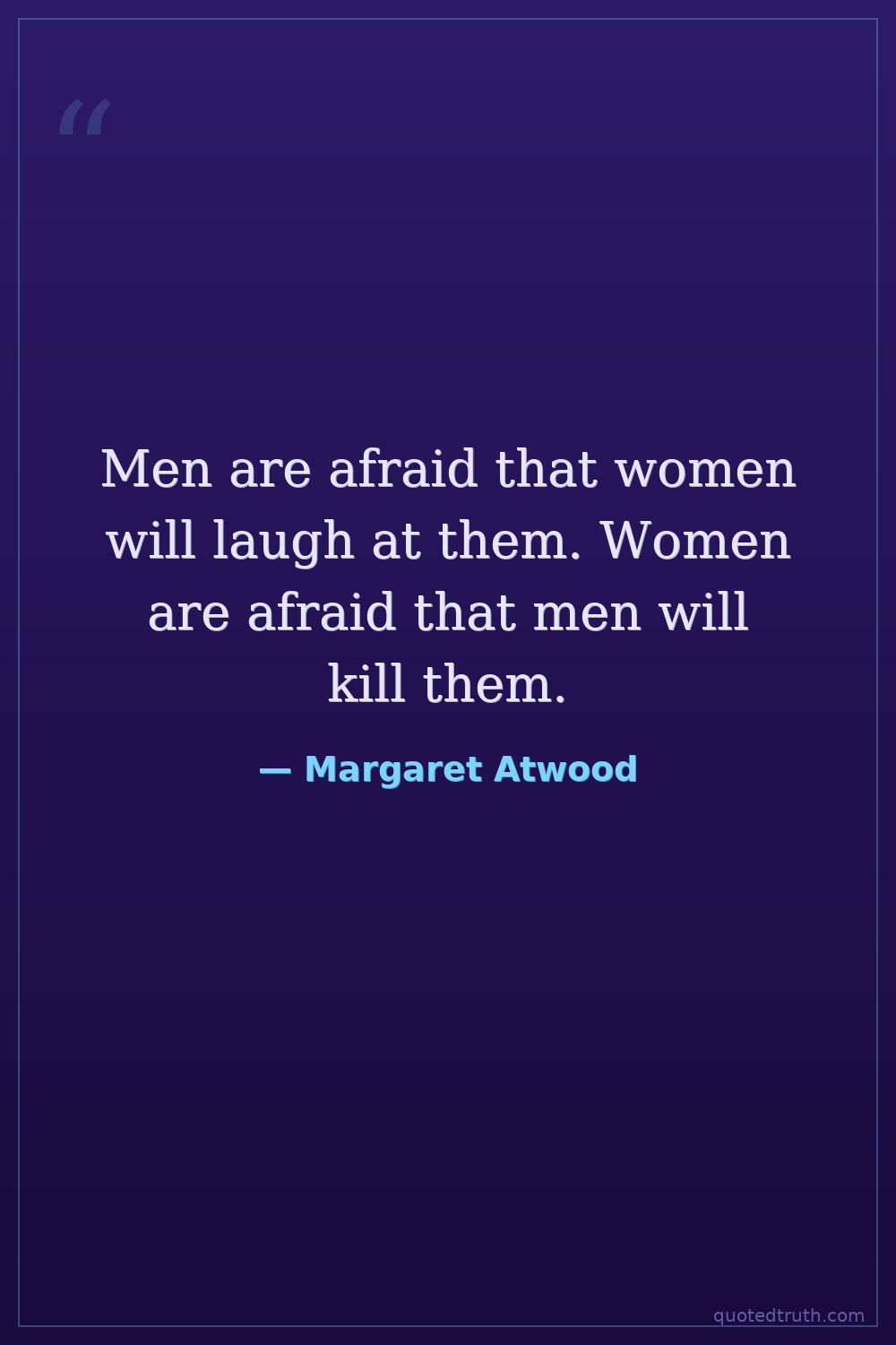Men are afraid that women will laugh at them. Women are afraid that men will kill them.