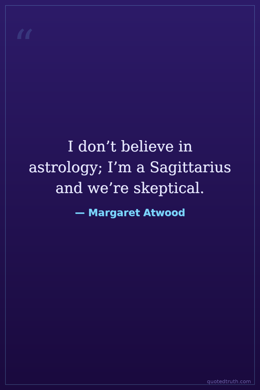 I don’t believe in astrology; I’m a Sagittarius and we’re skeptical.