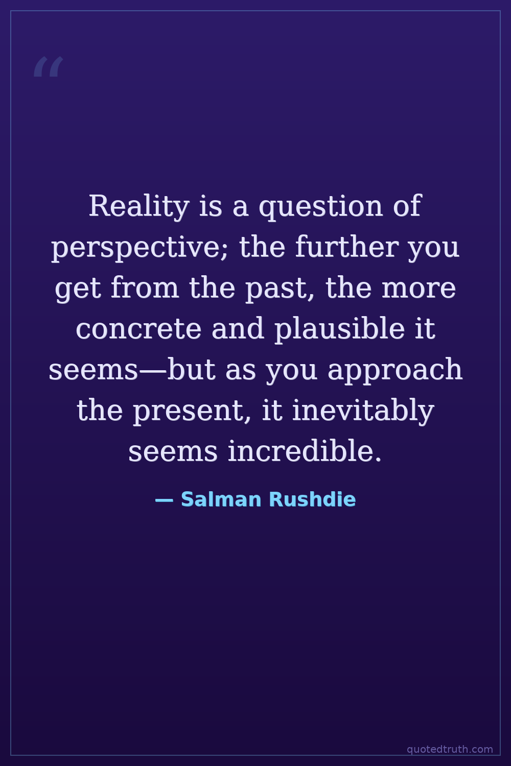 Reality is a question of perspective; the further you get from the past, the more concrete and plausible it seems—but as you approach the present, it inevitably seems incredible.