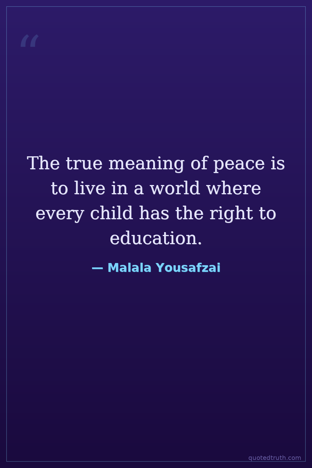The true meaning of peace is to live in a world where every child has the right to education.