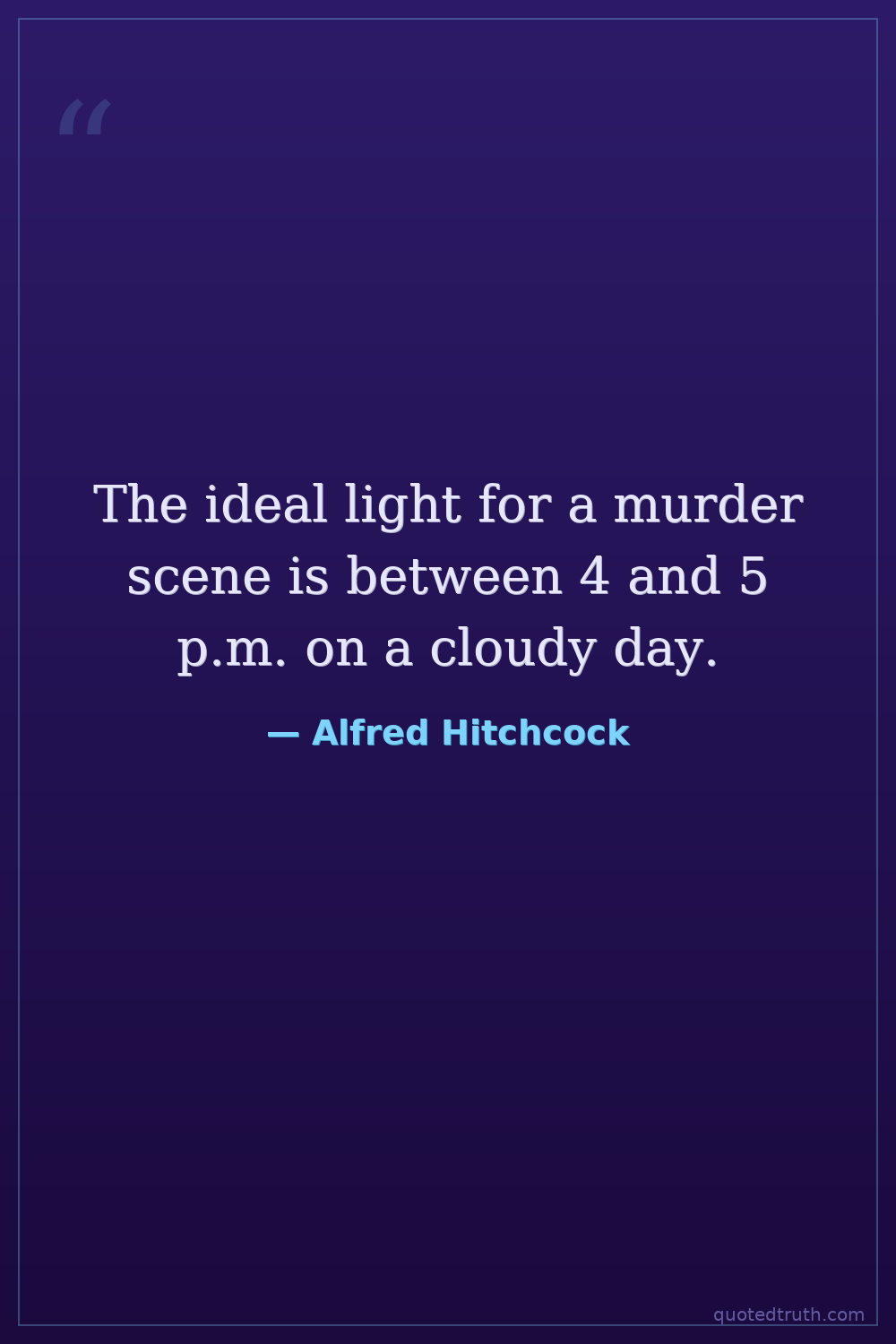 The ideal light for a murder scene is between 4 and 5 p.m. on a cloudy day.
