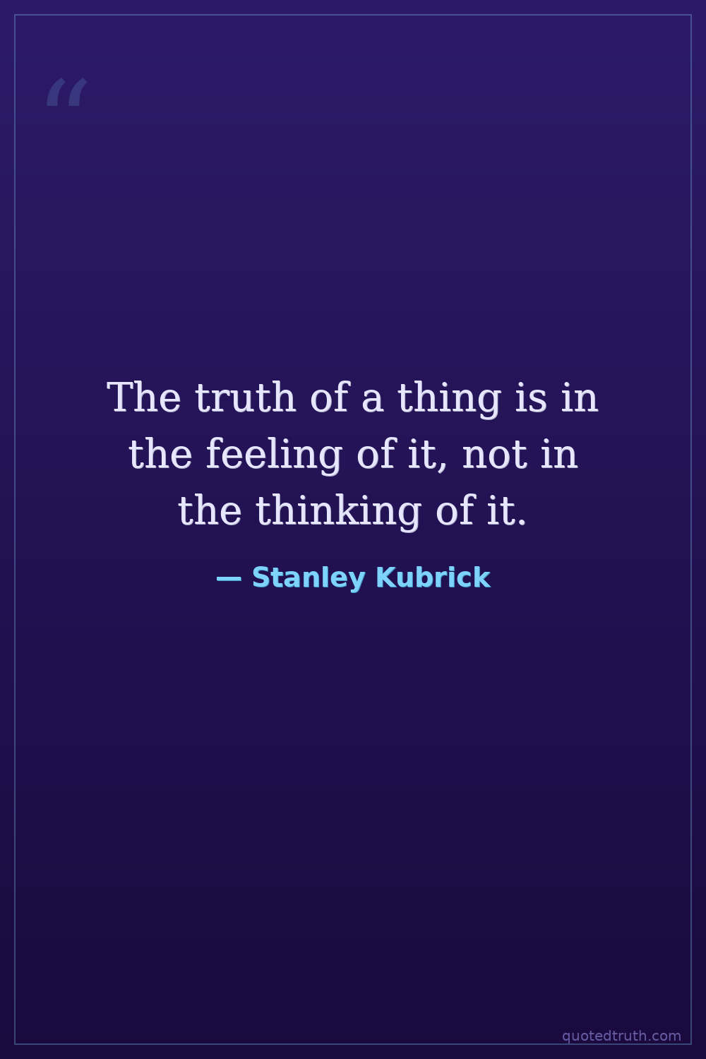 The truth of a thing is in the feeling of it, not in the thinking of it.