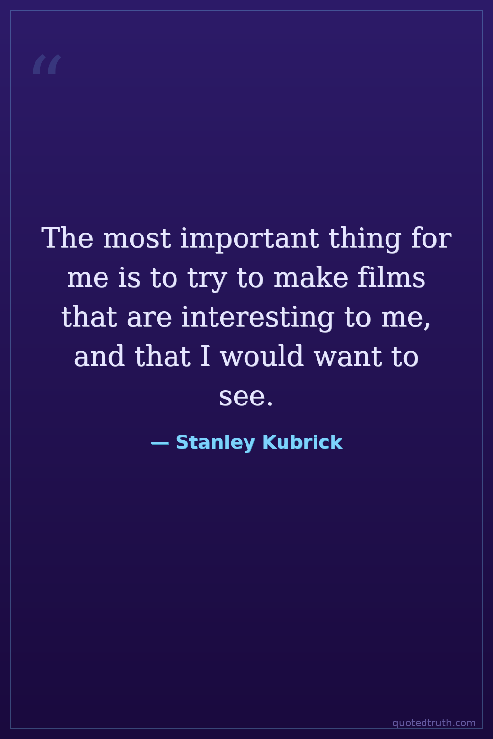 The most important thing for me is to try to make films that are interesting to me, and that I would want to see.