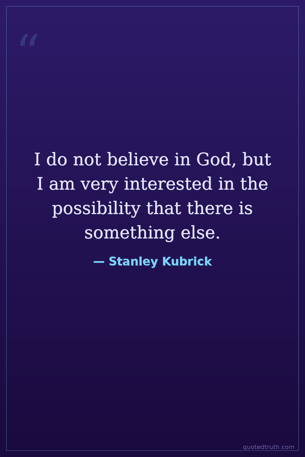 I do not believe in God, but I am very interested in the possibility that there is something else.