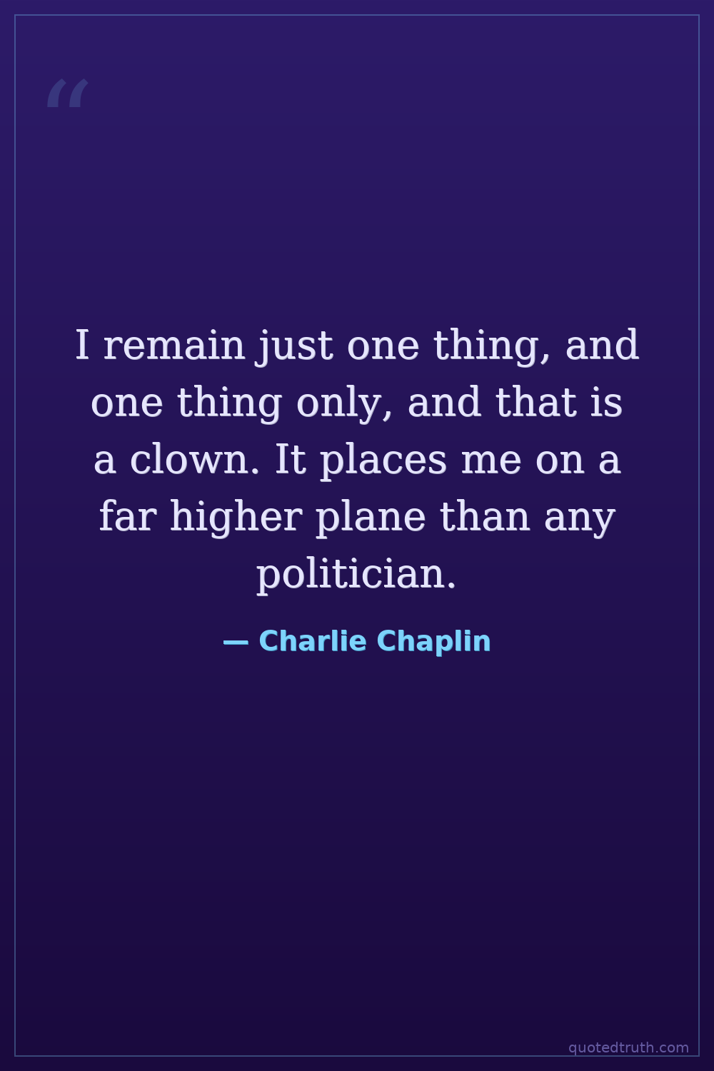 I remain just one thing, and one thing only, and that is a clown. It places me on a far higher plane than any politician.