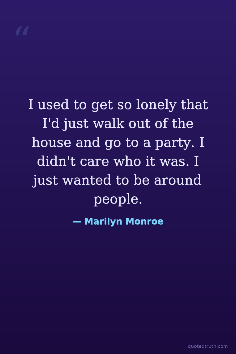 I used to get so lonely that I'd just walk out of the house and go to a party. I didn't care who it was. I just wanted to be around people.