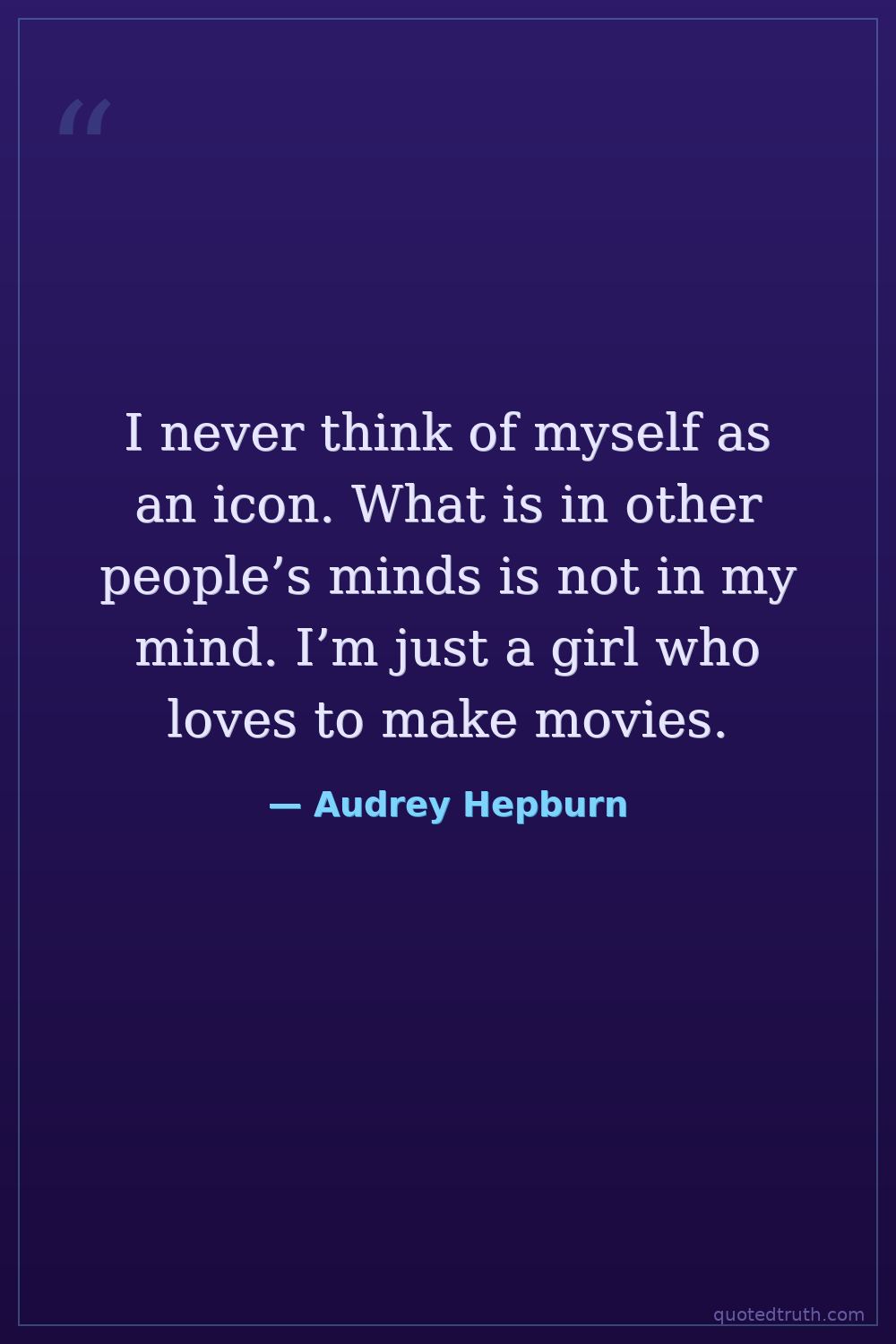 I never think of myself as an icon. What is in other people’s minds is not in my mind. I’m just a girl who loves to make movies.