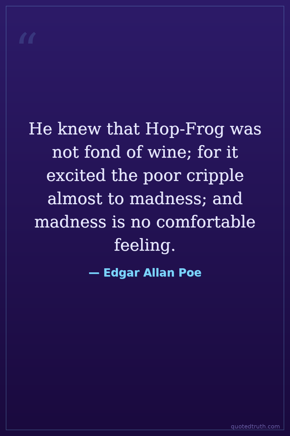 He knew that Hop-Frog was not fond of wine; for it excited the poor cripple almost to madness; and madness is no comfortable feeling.