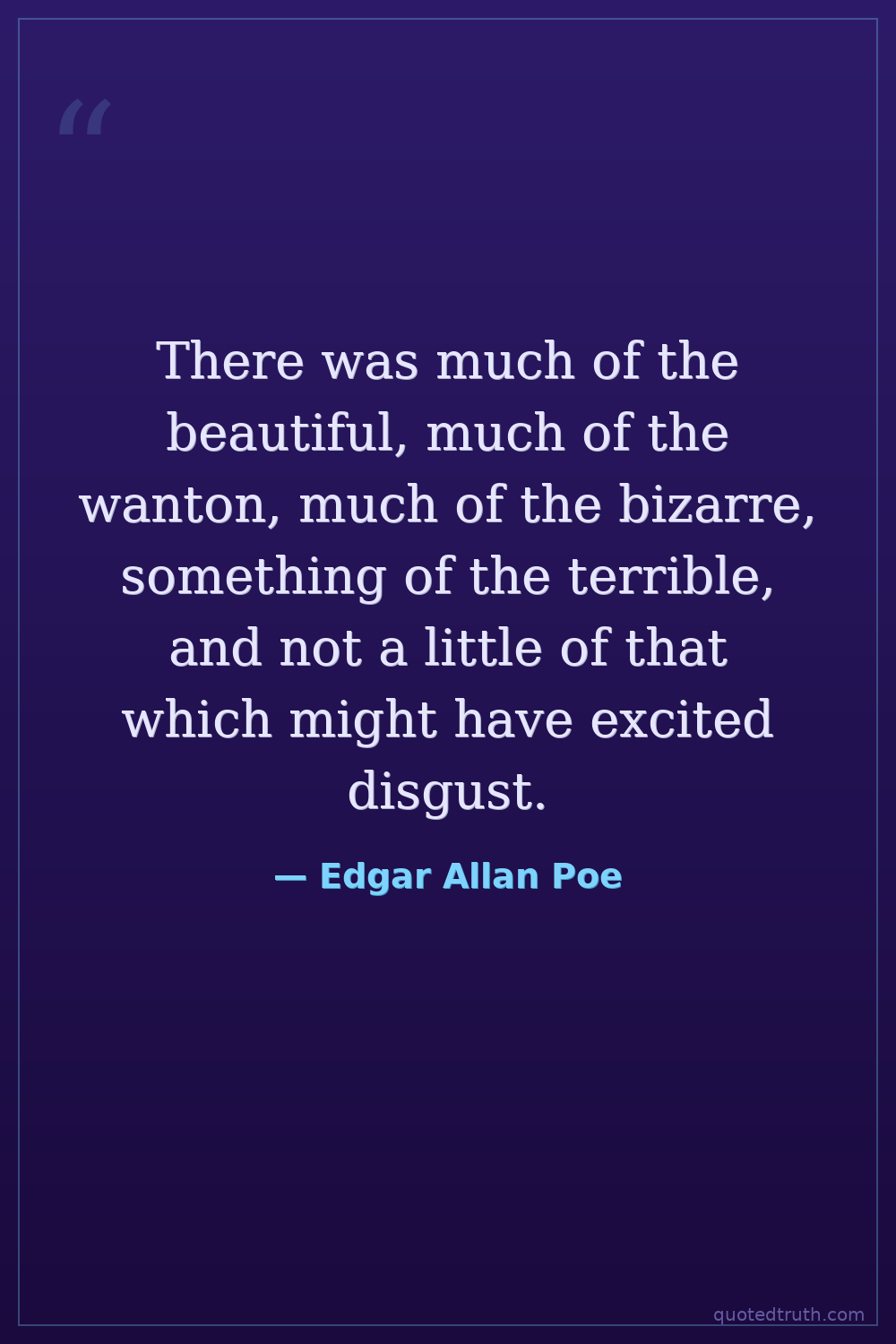 There was much of the beautiful, much of the wanton, much of the bizarre, something of the terrible, and not a little of that which might have excited disgust.