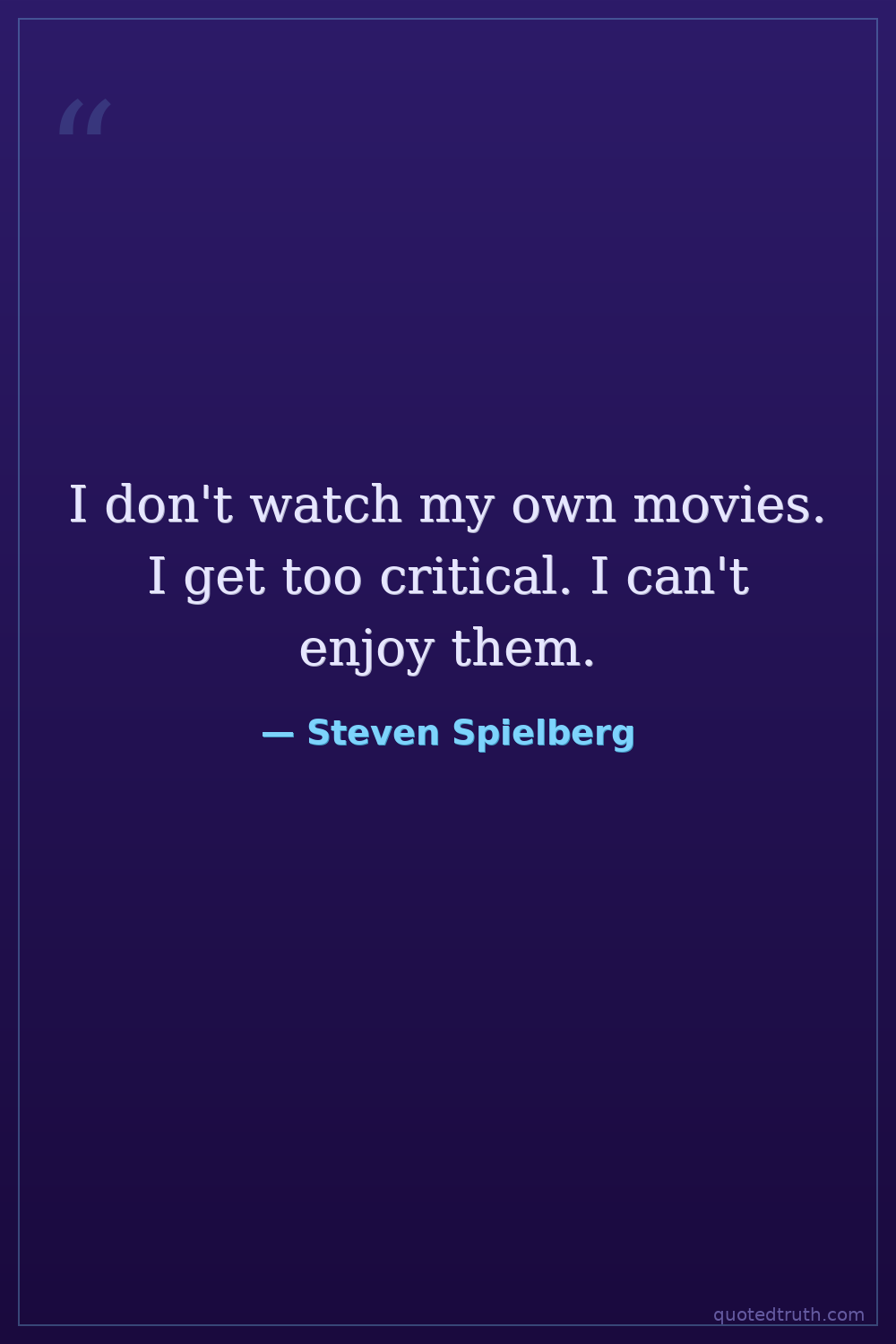 I don't watch my own movies. I get too critical. I can't enjoy them.