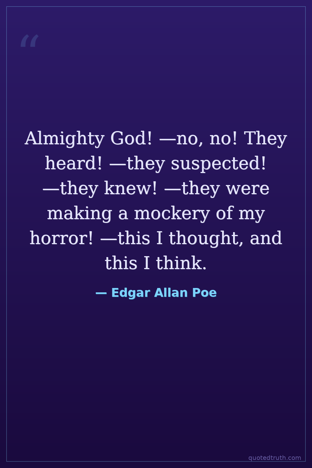 Almighty God! —no, no! They heard! —they suspected! —they knew! —they were making a mockery of my horror! —this I thought, and this I think.