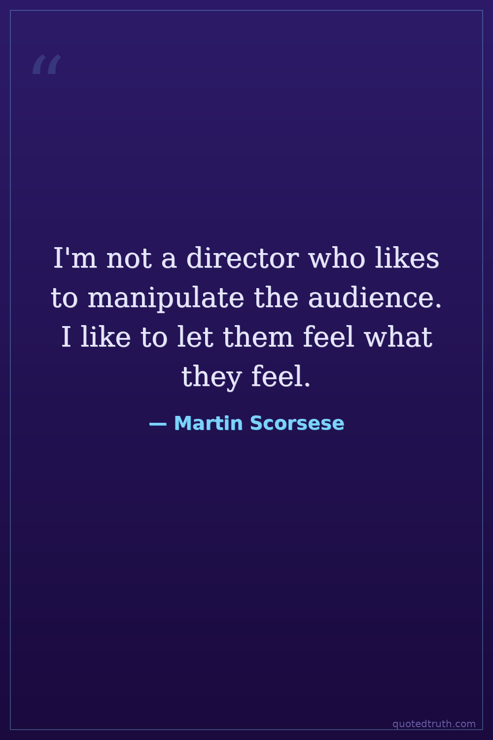I'm not a director who likes to manipulate the audience. I like to let them feel what they feel.