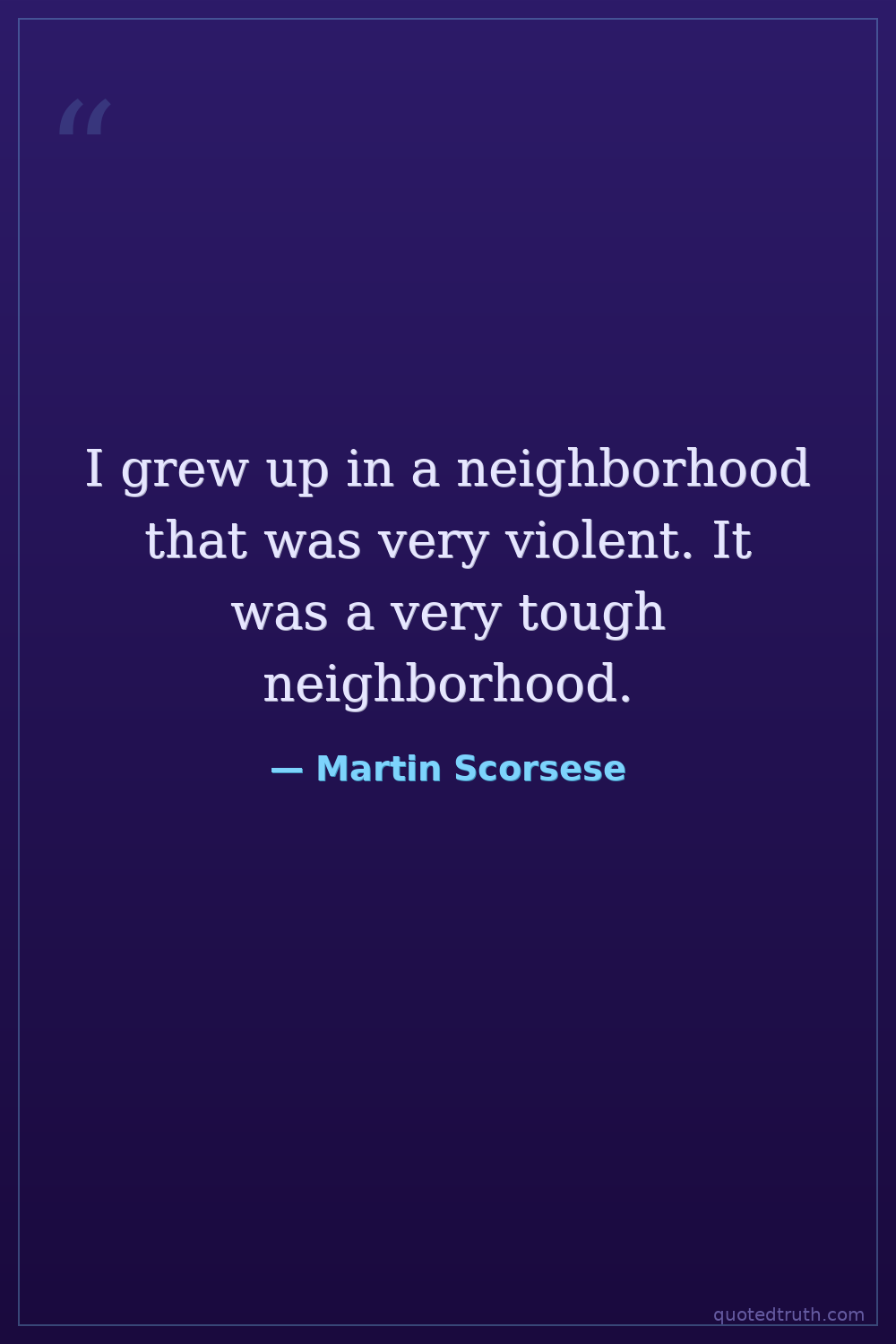I grew up in a neighborhood that was very violent. It was a very tough neighborhood.