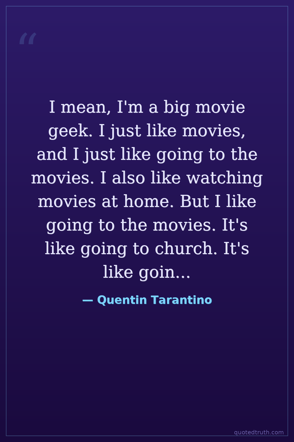 I mean, I'm a big movie geek. I just like movies, and I just like going to the movies. I also like watching movies at home. But I like going to the movies. It's like going to church. It's like going to a spiritual place.