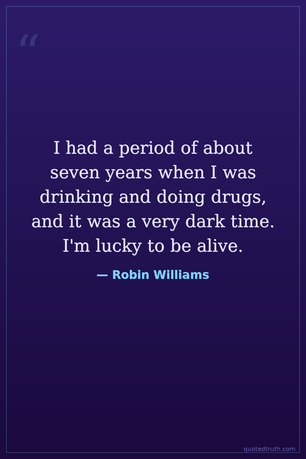 I had a period of about seven years when I was drinking and doing drugs, and it was a very dark time. I'm lucky to be alive.