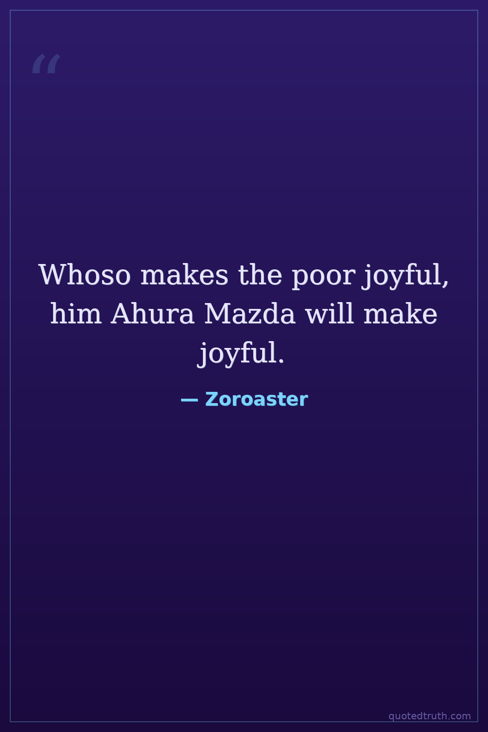 Whoso makes the poor joyful, him Ahura Mazda will make joyful.