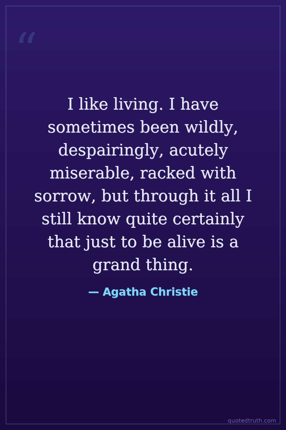 I like living. I have sometimes been wildly, despairingly, acutely miserable, racked with sorrow, but through it all I still know quite certainly that just to be alive is a grand thing.