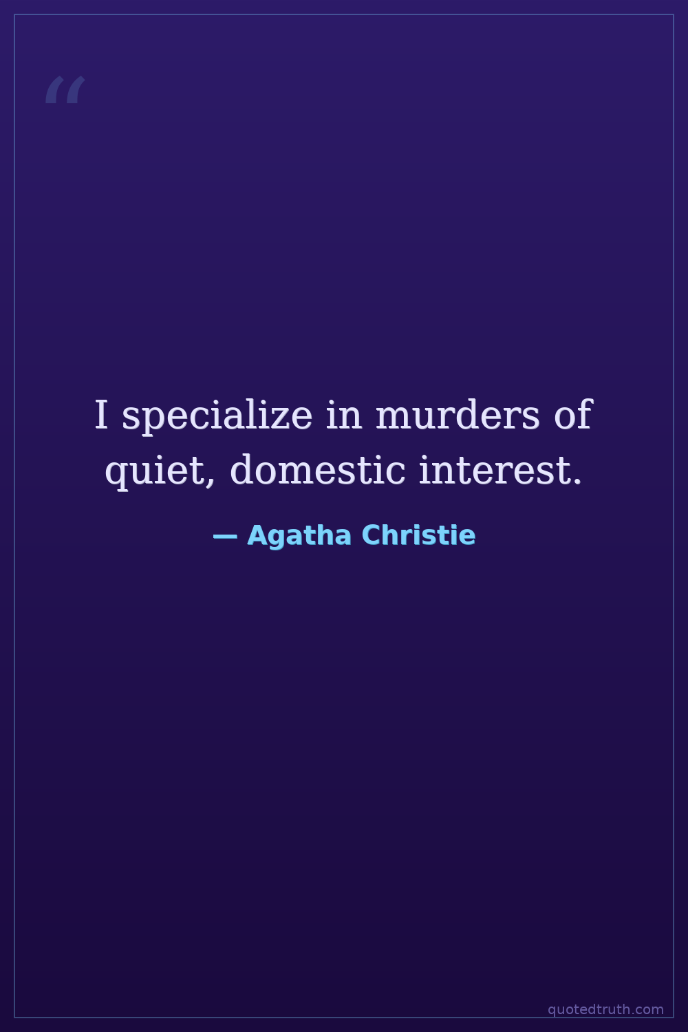 I specialize in murders of quiet, domestic interest.