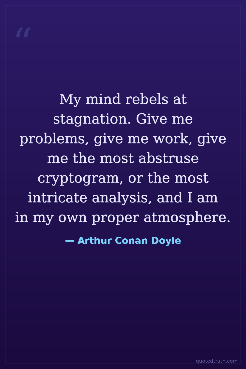 My mind rebels at stagnation. Give me problems, give me work, give me the most abstruse cryptogram, or the most intricate analysis, and I am in my own proper atmosphere.