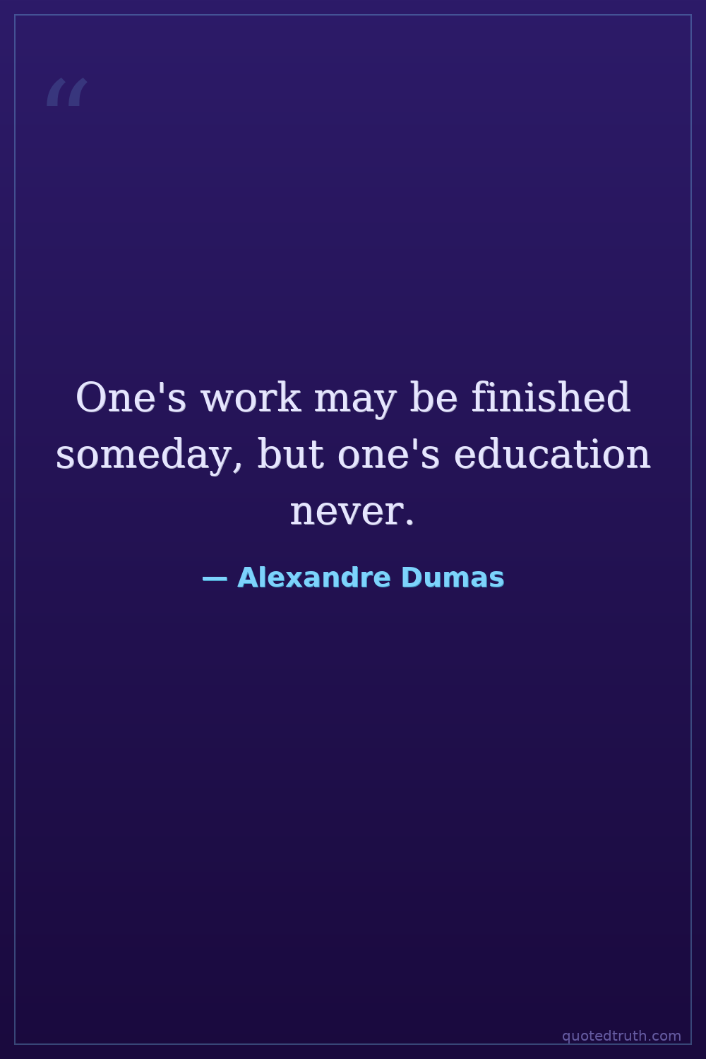 One's work may be finished someday, but one's education never.