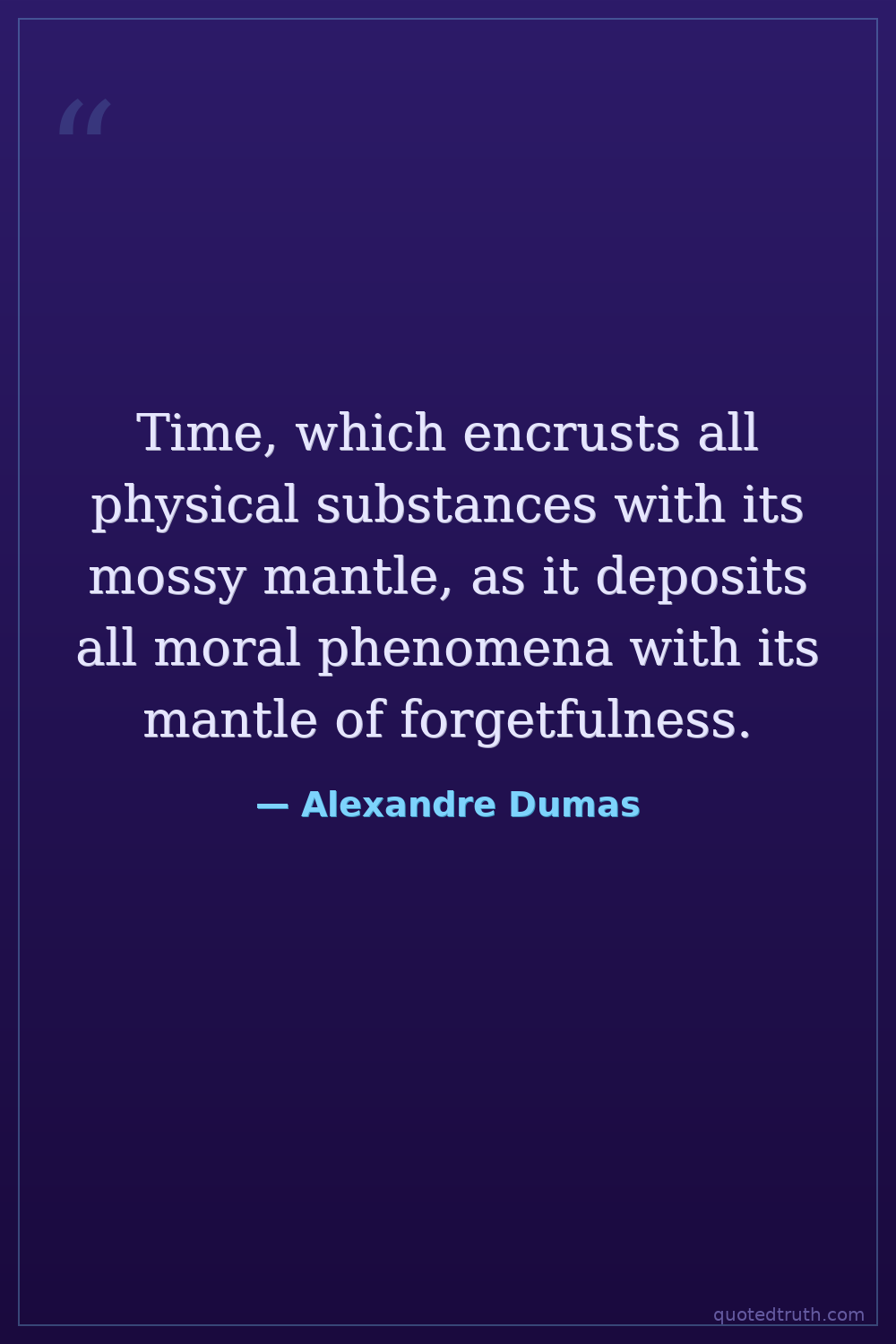 Time, which encrusts all physical substances with its mossy mantle, as it deposits all moral phenomena with its mantle of forgetfulness.
