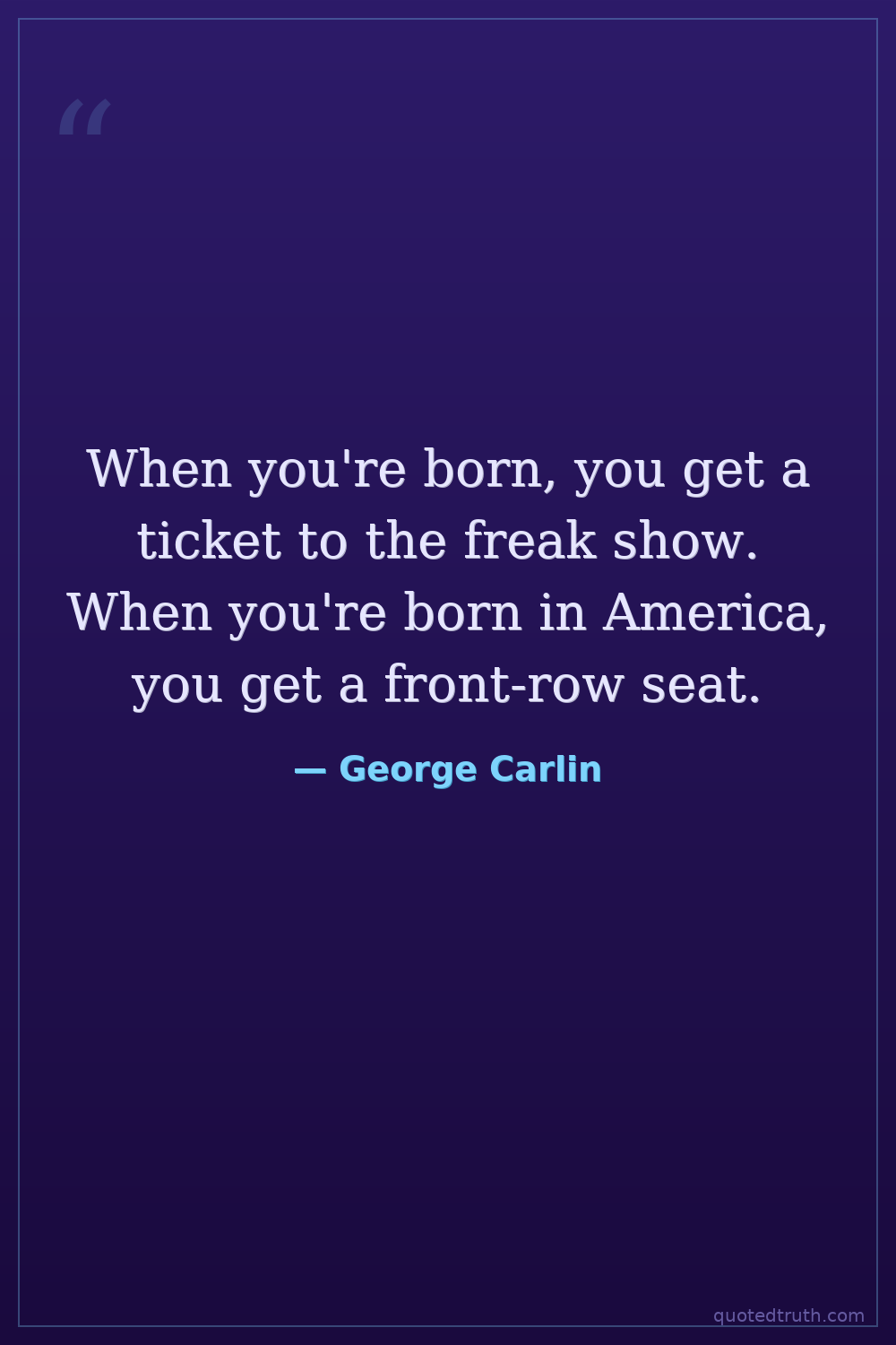 When you're born, you get a ticket to the freak show. When you're born in America, you get a front-row seat.