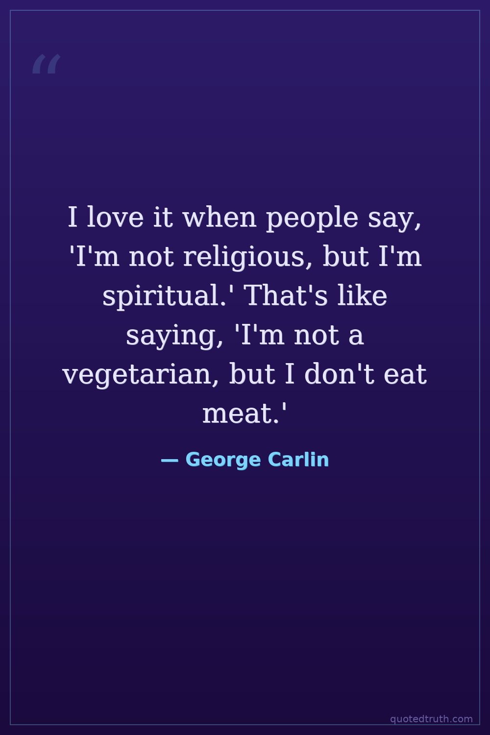 I love it when people say, 'I'm not religious, but I'm spiritual.' That's like saying, 'I'm not a vegetarian, but I don't eat meat.'
