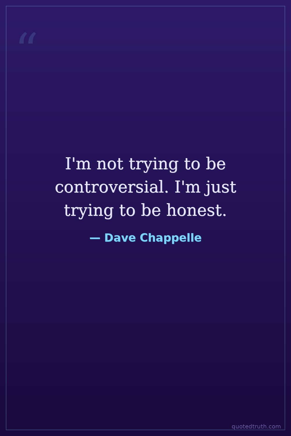 I'm not trying to be controversial. I'm just trying to be honest.