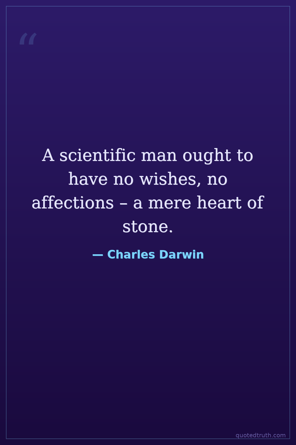 A scientific man ought to have no wishes, no affections – a mere heart of stone.