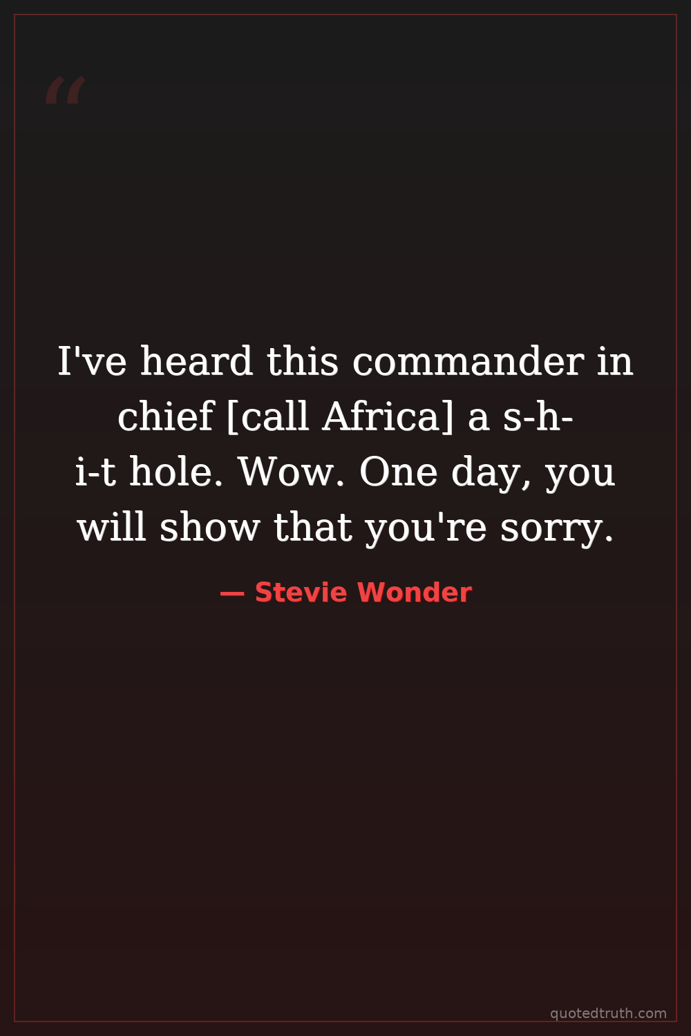 I've heard this commander in chief [call Africa] a s-h-i-t hole. Wow. One day, you will show that you're sorry.