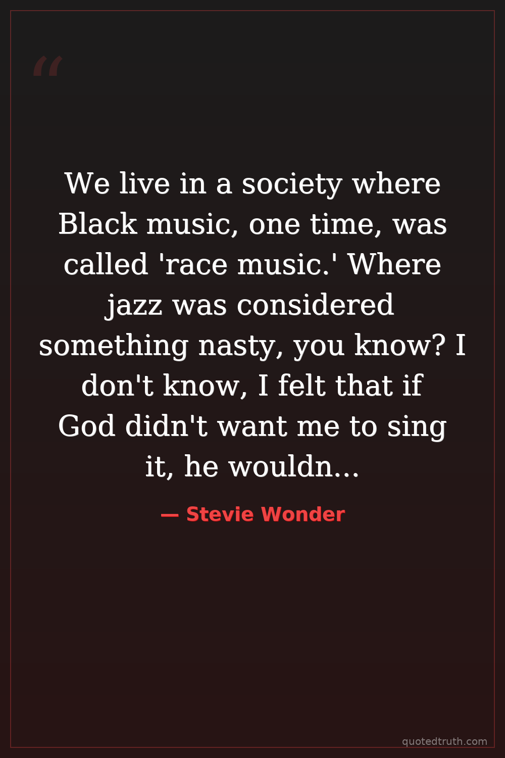 We live in a society where Black music, one time, was called 'race music.' Where jazz was considered something nasty, you know? I don't know, I felt that if God didn't want me to sing it, he wouldn't have given me the talent to do it!