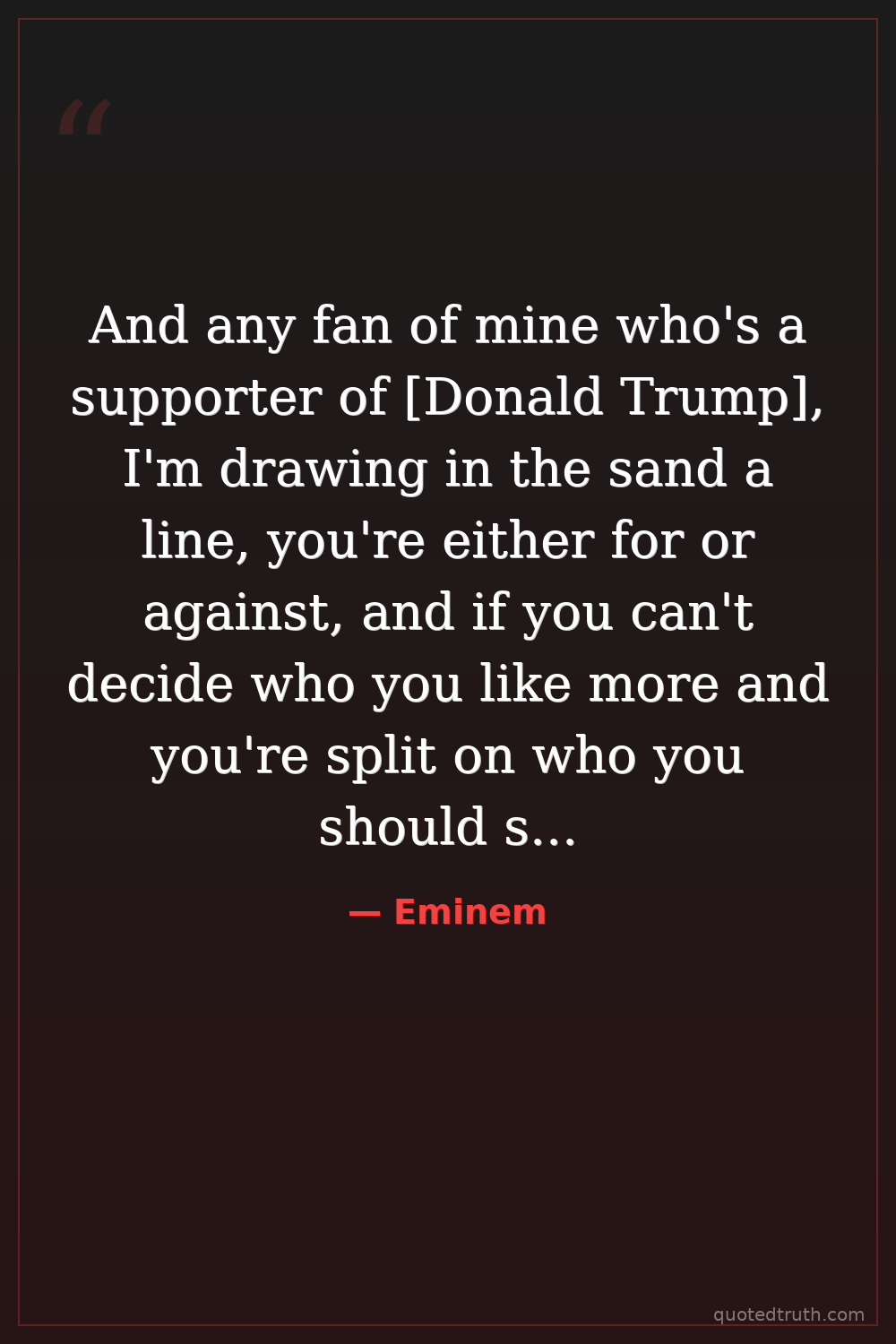 And any fan of mine who's a supporter of [Donald Trump], I'm drawing in the sand a line, you're either for or against, and if you can't decide who you like more and you're split on who you should stand beside, I'll do it for it for you with this. F*** you.