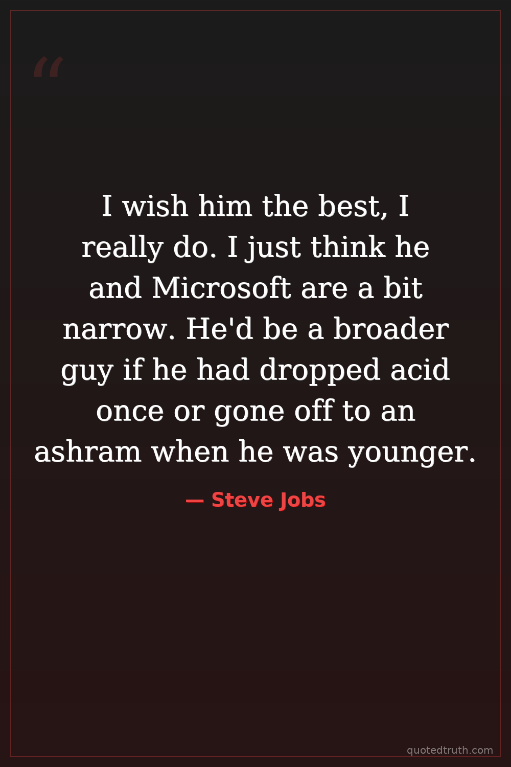 I wish him the best, I really do. I just think he and Microsoft are a bit narrow. He'd be a broader guy if he had dropped acid once or gone off to an ashram when he was younger.
