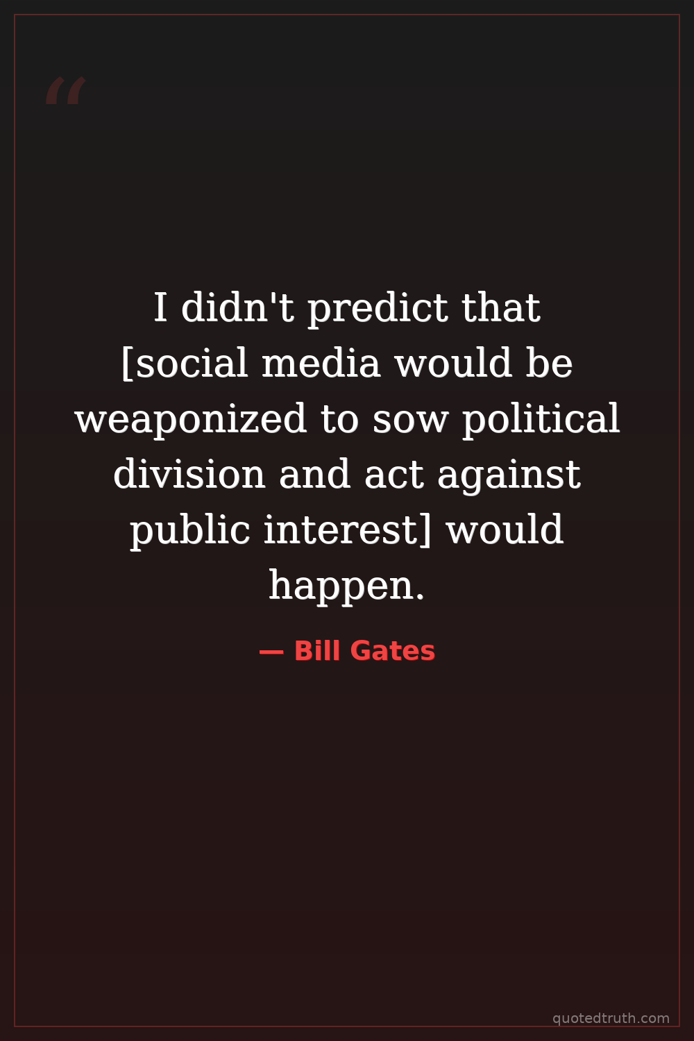 I didn't predict that [social media would be weaponized to sow political division and act against public interest] would happen.