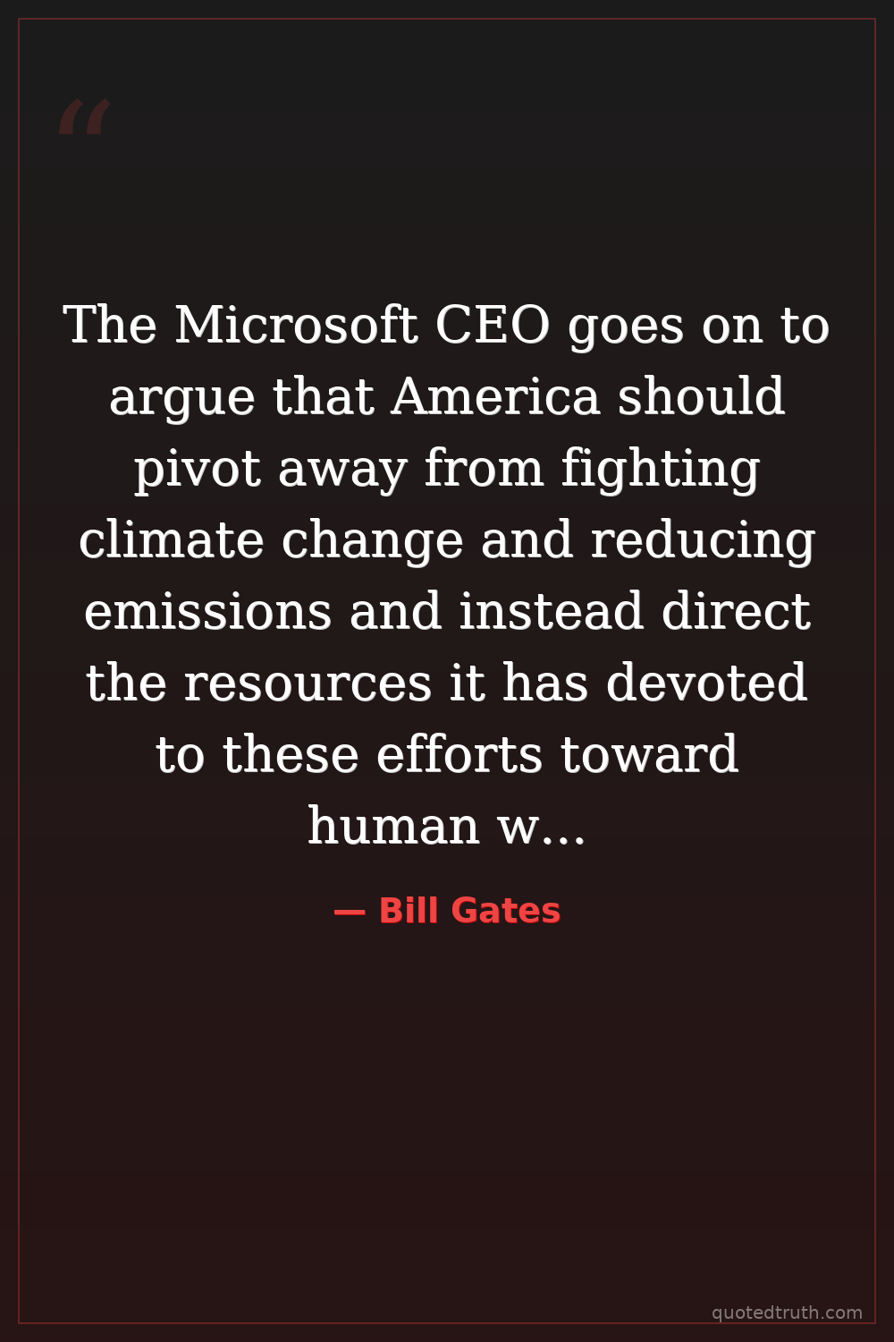 The Microsoft CEO goes on to argue that America should pivot away from fighting climate change and reducing emissions and instead direct the resources it has devoted to these efforts toward human welfare.