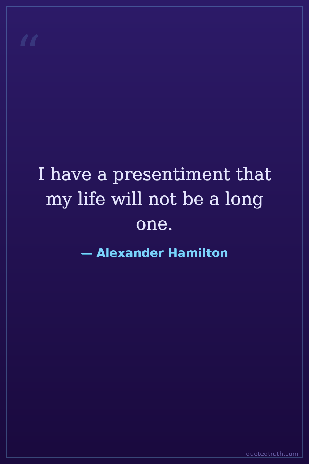 I have a presentiment that my life will not be a long one.